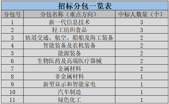 2020年,工信部将先进产业集群的招标项目划分为11个标段,具体如下: