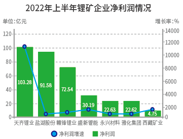 从中报数据看,天齐锂业净利润增速远超营收增速。而宁德时代净利润增速却大幅低于营收增速。2022年上半年,宁德时代营收1129.71亿元,同比增长156.32%;净利润81.68亿元,同比增长82.17%。