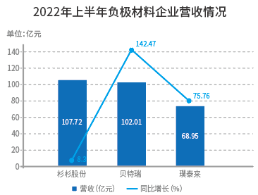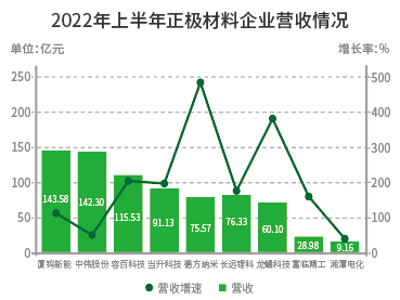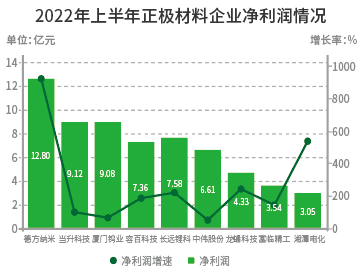 磷酸铁锂正极龙头企业当属德方纳米(SZ300769),2022年中报显示,上市公司营收75.57亿元,同比增长492.89%;净利润12.80亿元,同比增长847.44%。