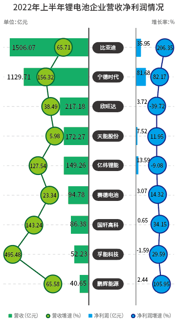 锂体育龙头宁德时代尚且如此,其他厂商可想而知。孚能科技(SH688567)上半年营收增速495.48%,净利润仍是负值;亿纬锂能(SZ300014)营收增速127.54%,净利润反而在负增长。