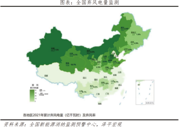 但与此同时,弃风和弃光电量的绝对量增长显著。2021年,全国弃风电量206.1亿千瓦时,弃光电量67.8亿千瓦时。弃电总量约为267.48亿千瓦时,同比高增约22.7%。西藏、青海等省份弃光率较高,光伏利用率仅为86.2%、80.2%。未来,随着电力供给结构向风光倾斜,新能源发电量大幅上涨,弃风和弃光电量将在未来一段时间保持上升趋势,新能源发电消纳上网问题仍不容小觑,需要积极运用储能系统解决弃电问题。