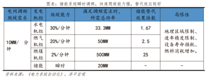 相对于传统调频,储能系统的爬坡能力强,响应速度和调节速率快、调节精度高,可有效避免调节延迟、调节偏差、调节反向等问题,综合调频能力较优。诸如飞轮储能等新储能系统加入调频辅助市场,可以有效保障电网安全稳定运行。《关于加快推动新型储能发展的指导意见》提出,要“积极推动电网侧储能合理化布局”,在大规模高比例新能源及大容量直流接入后,提升系统灵活调节能力和安全稳定水平。