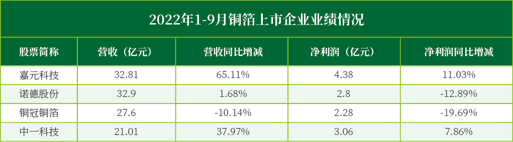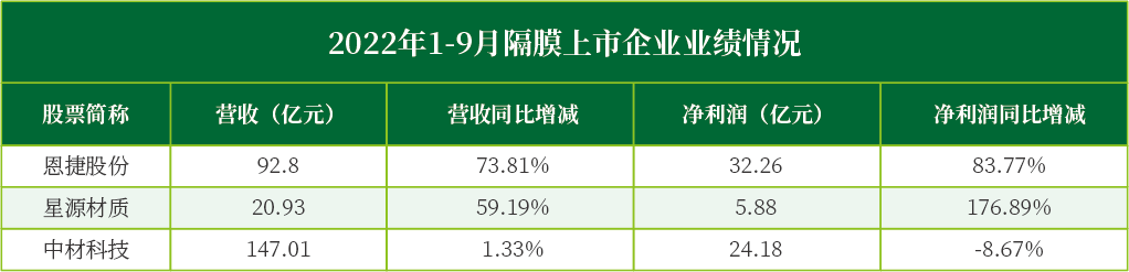 负极材料、电解液、隔膜、铜箔2022年前三季度业绩情况