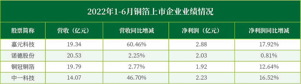 4家铜箔企业的净利润总和为9.06亿元,嘉元科技以2.88亿元名列第一;5家企业的净利润平均数为2.27亿元;4家企业的净利润同比全部实现正增长。
