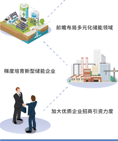 二是推动新型储能产业壮大规模提升实力。针对新兴储能领域布局有待加强、控制芯片及部件进口依赖等问题,提出优化锂体育产业区域布局、加快发展钠离子储能体育产业、提升储能控制芯片及产品供给能力、培育发展电解水制氢设备产业、前瞻布局多元化储能领域、梯度培育新型储能企业、加大优质企业招商引资力度等7条政策措施。如针对氢能产业化水平有待提高问题,提出加快推进质子交换膜电解水制氢装置重点项目建设,支持阴离子膜碱性、高温固体氧化物电解水制氢装备研制和中试生产。