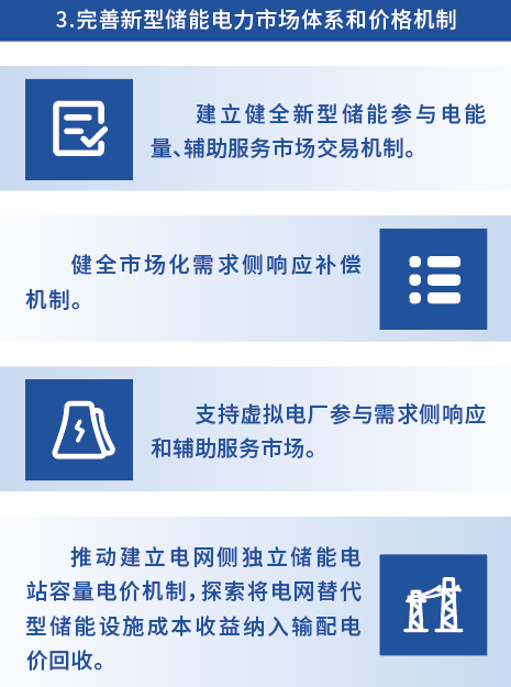 五是优化新型储能产业发展政策环境。针对新型储能产业中新兴领域技术有待突破、新型储能电站尚未形成成熟盈利模式等问题,提出加大科技研发支持力度、构建国际市场服务支撑体系、完善新型储能电力市场体系和价格机制、加大财政金融支持等4条政策措施。如在完善新型储能电力市场体系和价格机制方面,提出建立健全新型储能参与电能量和辅助服务市场交易机制、动态调整峰谷电价等措施,为新型储能发展创造空间。