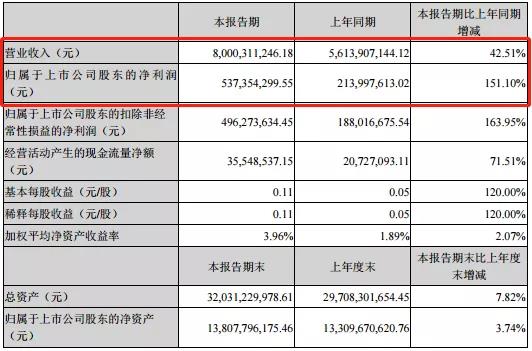 8月26日,锂电材料龙头格林美(002340.SZ)发布2021年半年度报告。报告显示,期内,格林美的营业收到达到80亿元,同比增长42.51%;净利润高达5.37亿元,同比增长151.10%。