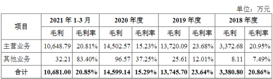 毛利率方面,2018-2020年、2021年1-3月,湖南裕能综合毛利率分别为20.86%、23.64%、15.29%、20.85%。