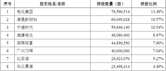 股东方面,2020年12月,湖南裕能增资扩股并引入了主要客户宁德时代、比亚迪作为战略投资者,目前,宁德时代、比亚迪直接持有湖南裕能的股份分别为10.54%、5.27%的股权。此外,长江晨道为湖南裕能的第八大股东,持股比例约为4.49%,而宁德时代通过旗下宁波问鼎出资间接参股长江晨道。