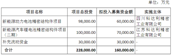 10月26日,科达利发布公开发行可转换公司债券预案,拟发行可转债募资不超过16亿元,用于新能源动力体育精密结构件项目、新能源汽车锂体育精密结构件项目(二期)和补充流动资金。