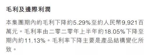 公告也解释了为什么利润会下降,公司称,报告期内,因产品结构变化,公司毛利率下滑;同时,受大宗商品等原材料上涨影响,公司整体盈利能力受到一定影响。公司毛利率由2020年上半年约18.05%下降至期内约11.13%。