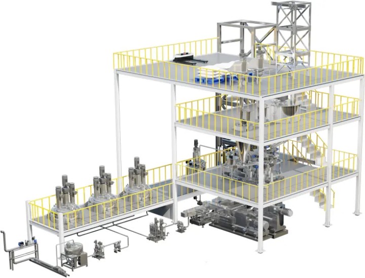 ▲GMK3.0系列锂体育正负极浆料双螺杆连续法自动生产线