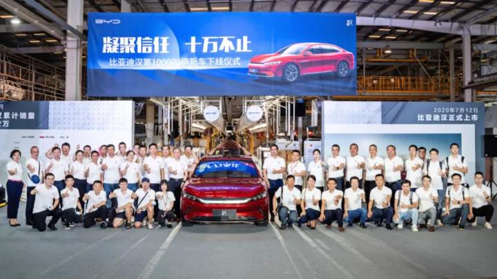 2021年7月20日,凝聚信任 十万不止比亚迪汉第10万辆新车下线仪式在东莞比亚迪全球总部举行。比亚迪汉车主、...