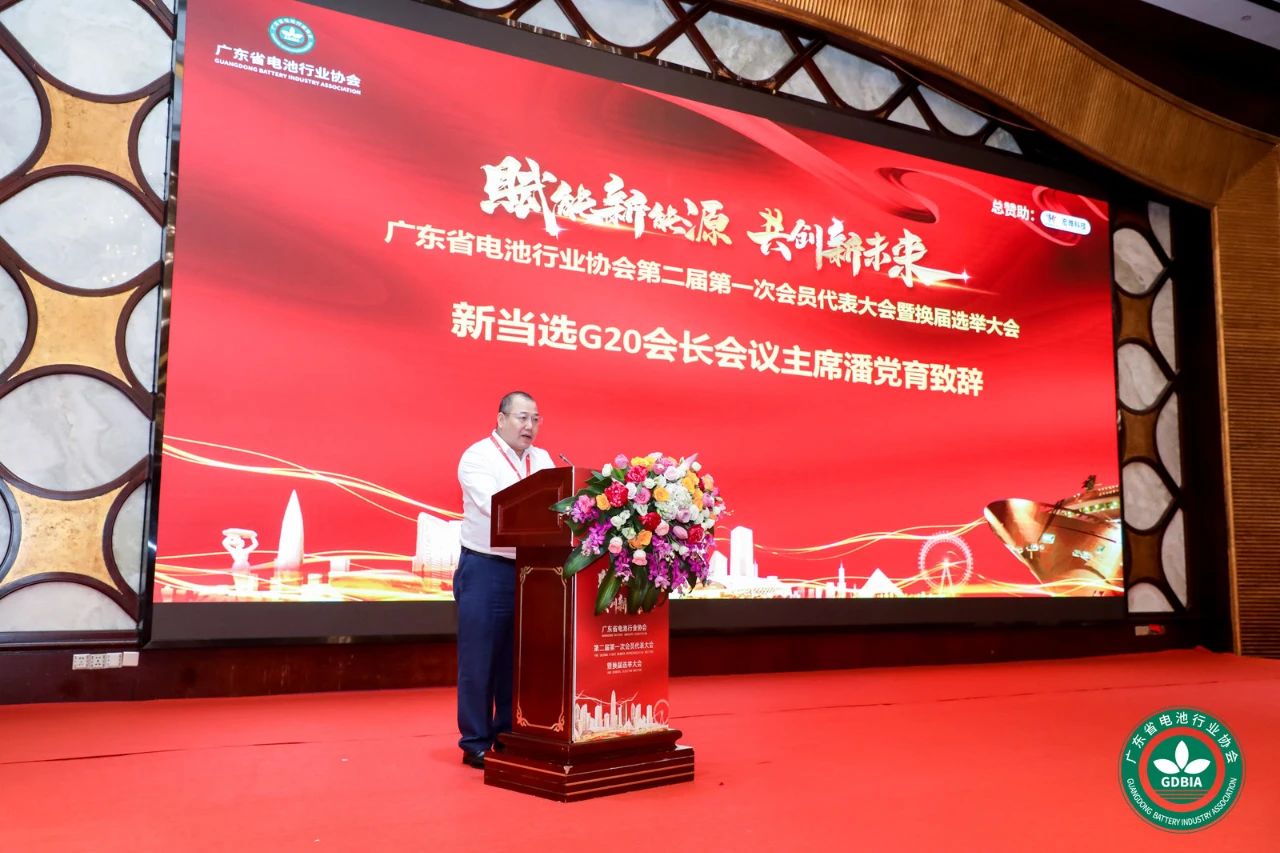 广东省体育行业意昂5协会新一届G20会长会议主席、豪鹏科技董事长潘党育致辞。他表示很荣幸能够被大家推选为G20会长会议主席,感谢各位会员代表的信任和支持。