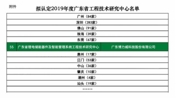 8、2月18日,广东省科学技术厅公示了2019年广东省工程技术研究中心名单,根据专家评议结果,我会常务副会长单位——广东博力威科技股份有限公司位列其中。依托广东博力威科技股份有限公司建设的“广东省锂电储能器件及智能管理系统工程技术研究中心”,被广东省科学技术厅拟认定为2019年度广东省工程技术研究中心。