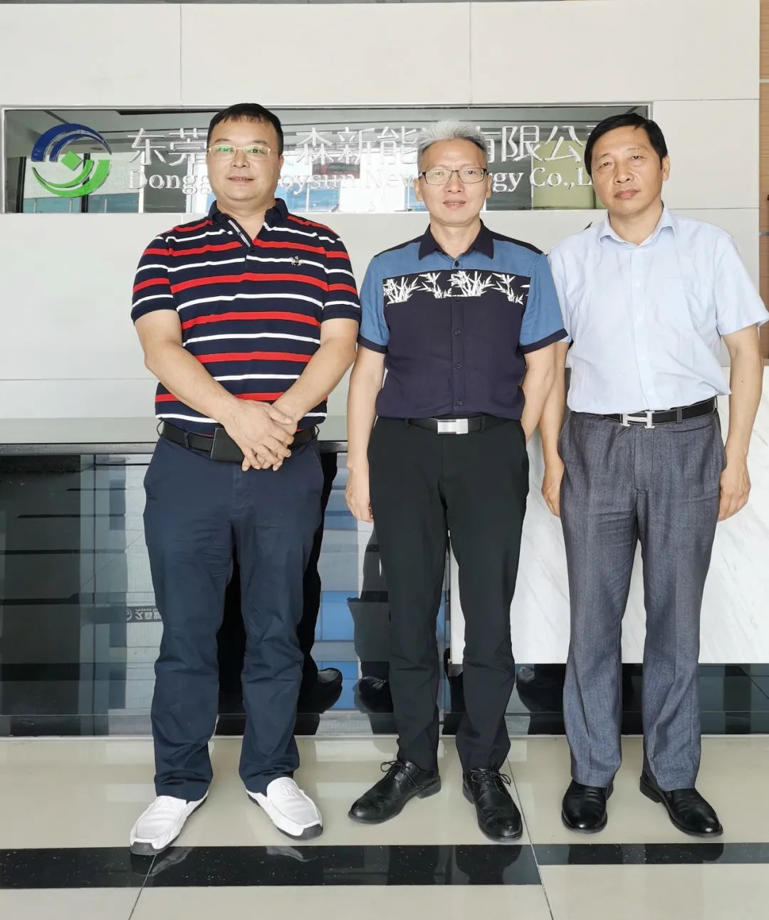 为加强会员企业间的了解,为会员企业搭建交流合作平台,推动会员企业间互助共赢,7月14日,我会副会长、江苏华谷新材料有限公司(以下简称江苏华谷)常务副总经理杨解伦在唐长江秘书长的陪同下前往我会执行会长单位——东莞市久森新能源有限公司(以下简称久森新能源)走访交流,我会执行会长、久森新能源董事长汤欣平热情的接待了唐长江秘书长一行。
