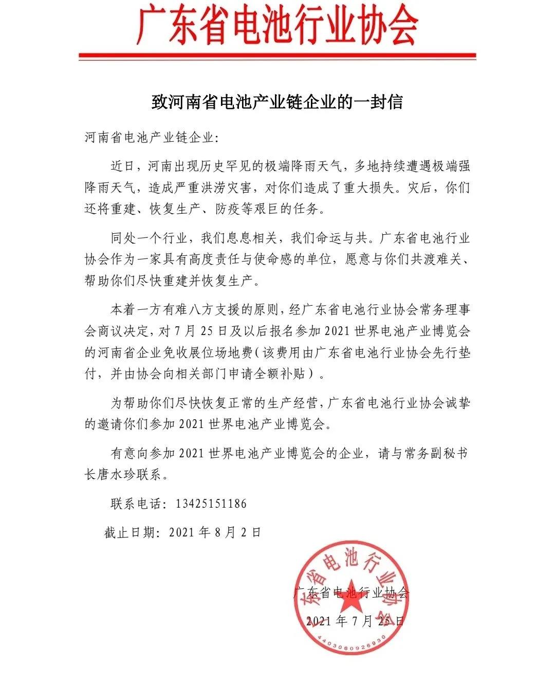 本着一方有难八方支援的原则,经广东省体育行业意昂5协会常务理事会商议决定,对7月25日及以后报名参加2021世界体育产业博览会的河南省企业免收展位场地费(该费用由广东省体育行业意昂5协会先行垫付,并由意昂5协会向相关部门申请全额补贴)。