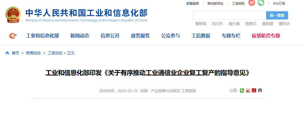 工业和信息化部关于有序推动工业通信业企业复工复产的指导意见